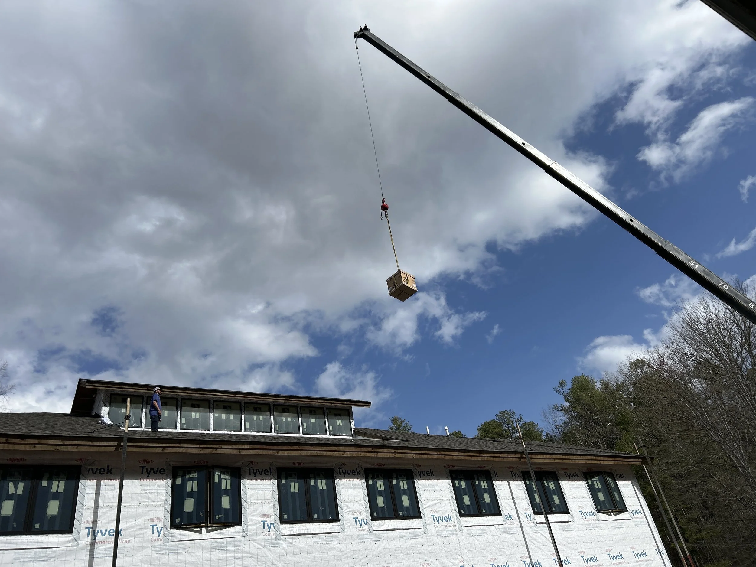 The HVAC crew will be finishing up the rough-in in the building.